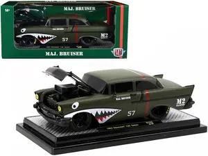 - Brand new 1/24 scale diecast car model of 1957 Chevrolet 150 Sedan #57 Matt Green Metallic "Major Bruiser" Limited Edition to 5650 pieces Worldwide die cast model car by M2 Machines.