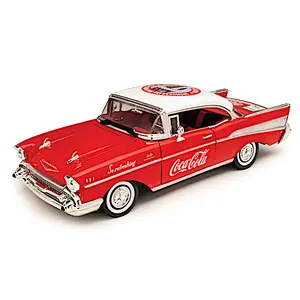 Exclusive COCA-COLA 1:18-Scale Chevrolet Bel Air Diecast Car Featuring Era-Appropriate Full-Color COKE Graphics And Rolling Rubber Tires - The Chevy Bel Air was first introduced in 1950 but it was the souped-up '57 model that really began to turn heads. Meanwhile, COCA-COLA was experiencing a surge of popularity as their operations expanded into over 100 countries and their exposure reached the cover of Time magazine. Now, a Chevrolet Bel Air collectible diecast car brings these two iconic brands together at last. Quench your thirst for nostalgia with the Exclusive 1957 COCA-COLA Bel Air Diecast Car, only from The Hamilton Collection. This distinctive COCA-COLA collectible car is precision engineered in 1:18 scale with over 150 individual parts to recreate the famed body style of the 1957 Bel Air.Emblazoned with official era-specific COKE logos and graphics from bumper to bumper, this 1:18 scale diecast car sports a vivid red and white paint scheme mirroring COCA-COLA's classic colors. The opening hood and doors let you admire a wealth of details, including an intricately articulated dash and interior. Plus, smooth-rolling real rubber tires add to your collectible car's authenticity. It even arrives with a high-quality crystal-clear, dust-resistant display case including two interchangeable backdrop panels with full-color COCA-COLA artwork. Intense demand is anticipated, so don't delay. Order now!