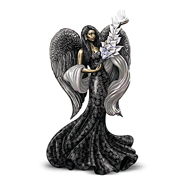 Inspirational Angel Figurine Collection Hand-Painted With Silver, Black And Bronze Metallic Finishes - Written in 1929 by Albert E. Brumley and published in 1932, the hymn "I'll Fly Away" is the most recorded gospel song of all time, with over 5,000 versions of the song created by artists worldwide. With its simple yet powerful messages of eternal life and the coming glory of heaven, this cherished hymn is a favorite sung in worship services across many faiths. And now, acclaimed artist Keith Mallett, a painter and sculptor whose famous works are celebrated for their spirit of strength and resiliency, takes inspiration from this timeless hymn with a glorious collection of angel figurines! Introducing the I'll Fly Away Angel Figurine Collection, a limited edition available exclusively from The Hamilton Collection. Your collection begins with Issue One, Shimmering Heavenly Glory. Soon, your collection continues with Issue Two, Glistening Hallelujah Beauty, Issue Three, Sparkling Infinite Peace and additional figurines, each a separate issue to follow.Exquisitely handcrafted of artist's resin and hand-painted in a rich palette of golden and silvery accents with hints of glistening bronze tones, each heirloom-quality keepsake in this collection offers an uplifting reminder of His everlasting love. With just your first glimpse, you'll be drawn to these angels' elegant poses, the intricately etched feathers on their wings that give them such an ethereal presence and their flowing gowns boasting high-gloss finishes and etched patterning inspired by Keith Mallett's artwork. Faceted Preciosa stones bring sparkling beauty and radiance. Plus, each angel figurine holds life-affirming symbols like doves, lilies and more in her arms for even more symbolism. These stunning figurines are sure to make wonderful additions to your angel decor and a thoughtful, inspirational gift to send extra love and encouragement to someone special. Intense demand is expected, so don't delay.