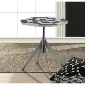 The Black and White Checker Accent Table offers a striking yet simple design with an octagon shaped wooden top and a four-legged metal base. |HEIGHT ADJUSTMENT REQUIRED PRIOR TO USE.