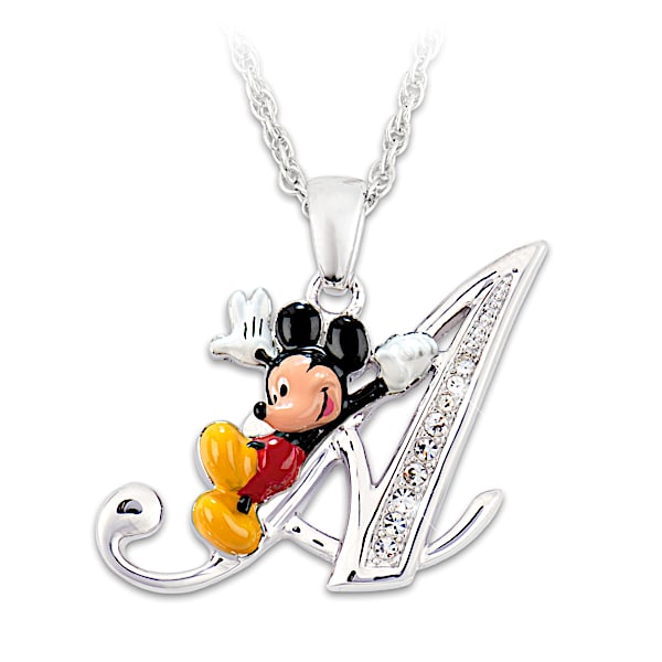 Disney The Magic Of You Mickey Mouse Sterling Silver-Plated Pendant Necklace Featuring The Initial Of Your Choice & Adorned With Crystals - Believe in the magic of Y-O-U and have a little F-U-N with Disney's Mickey Mouse! Now, you can bring the perfect splash of sparkle to any outfit with an initial pendant necklace featuring the charming smile and whimsical personality we all know and love of the one and only Mickey Mouse. Introducing the Disney The Magic of You Pendant Necklace, a fine jewelry design from The Bradford Exchange. Licensed from Disney, this Mickey Mouse pendant necklace lets you pick the initial of your choice to express your individuality in a unique way or surprise a fellow Mickey Mouse fan with a dazzling Disney jewelry gift.This gleaming pendant necklace displays a fully sculpted and hand-enameled portrait of Mickey Mouse in his signature color palette. He strikes playful poses on each rhodium-plated letter to show him interacting with the design in an adorable way. Plus, the initial is adorned with a sparkling pavé of genuine crystals to complete the irresistible look. Strong demand is expected, so don't delay. Order now!This fine jewelry is intended for adults.
