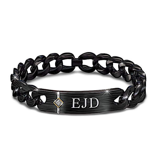 Personalized Jewelry - Your son is out-of-this-world unique, and you are endlessly proud of him! Now, you can remind him that anything is possible with an extraordinary meteorite bracelet, carrying a treasure from space and beyond! Introducing the New Heights Personalized Bracelet, a fine jewelry design available exclusively from The Bradford Exchange. Personalized with your son's initials, this black chain bracelet is sure to make a thoughtful gift for any occasion.Masterfully crafted of solid stainless steel with black ion plating, the bracelet features a rare piece of a genuine meteorite from the deep depths of space. The genuine stone is bordered by a rich 24K gold ion-plated accent in a modern and bold design. To the right of the inlay, your son's initials are etched for an even more unique touch. Adding to the meaning and value, the bracelet is etched on the reverse side with an inspirational sentiment. Plus, this sleek monogrammed jewelry is sized to comfortably fit most wrists and closes with a C-clasp. Strong demand is anticipated, so don't delay. Order now!