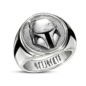 Personalized Jewelry - With his impressive Beskar armor, lethal weaponry and stealth tactics, Boba Fett is regarded as one of the most legendary bounty hunters in the STAR WARS universe. Now, you can wear a Boba Fett ring inspired by the character's iconic suit! Introducing the STAR WARS Boba Fett Personalized Ring, a fine jewelry design only from The Bradford Exchange. This statement ring is personalized with your name translated into Mandalorian and etched on the inside of the band along with the Boba Fett logo. The next best thing to having your own custom-forged Beskar armor, this STAR WARS jewelry design embodies all the wear and character of Boba Fetts inherited bounty hunter suit!Skillfully hand-sculpted and cast in solid stainless steel, this officially licensed ring's dimensional centerpiece closely resembles Fett's iconic helmet, complete with years of battle scars and signature rangefinder antenna. The T-shaped visor icons on each side of the ring feature black ion plating, while the raised helmet design also boasts black ion-plated accents and rests upon a background inspired by the rippled texture of Beskar ingots. The striking ring respectfully adheres to the bounty hunter creed with its many intricate details, plus the personalization featuring your name in Mandalorian makes it even more out-of-this-world! Strong demand is anticipated, so don't delay. Order now!