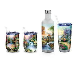 Tranquility Insulated Drinkware Collection With Two 12 Oz. Tumblers, One 17 Oz. Water Bottle & One 20 Oz. Travel Tumbler Featuring Full Color Thomas Kinkade Artwork - Everyone needs to take a break from time to time and leave the stresses of their day behind for a place of utter tranquility. The Painter of Light™ had a remarkable gift for capturing such moments of spiritual refreshment in his artwork, now beautifully expressed in a collection of reusable beverage containers. Refresh your body and soul with the Thomas Kinkade Tranquility Drinkware Collection, available exclusively from The Bradford Exchange. This officially licensed collection begins with Issue One, two 12-oz. tumblers. Next to arrive will be Issue Two, a 17-oz. insulated water bottle followed by Issue Three, a 20-oz. insulated travel tumbler and additional Thomas Kinkade art-inspired insulated drinkware, each a separate issue to follow.‡Each distinctive beverage container in this collection is expertly crafted of durable stainless steel for years of use and insulated to keep cold beverages cold and hot ones hot. They feature reusable, environmentally friendly straws so you can sip in style, while reducing waste. Best of all, Thomas Kinkade's most tranquil visions of colorful gardens, flowered gazebos, flowing streams and quaint cottages are applied directly to the stainless steel and will not fade with repeated use. Strong demand is expected for this originally designed drinkware collection, so hurry and order now!