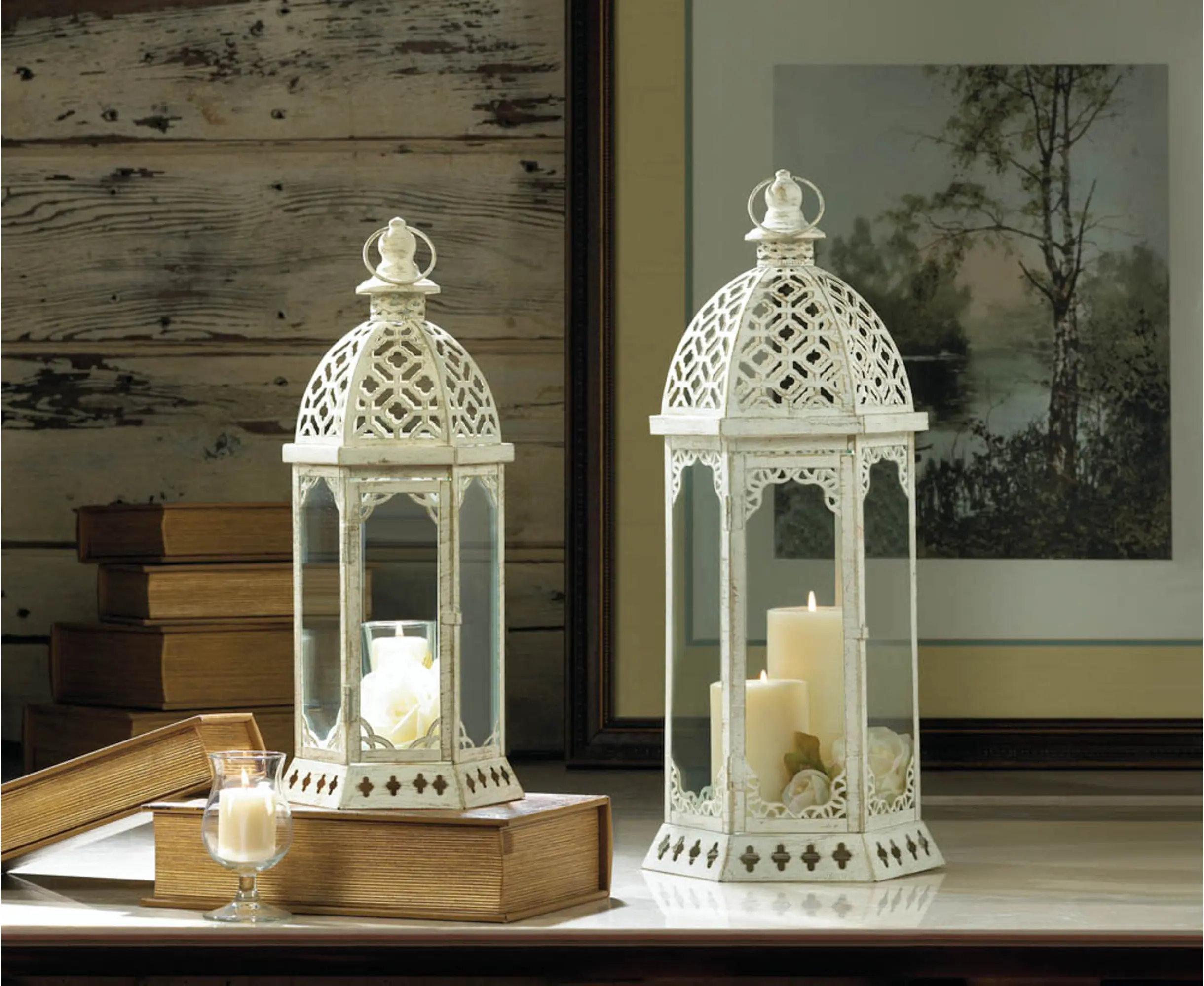 GRACEFUL DISTRESSED SMALL WHITE LANTERN