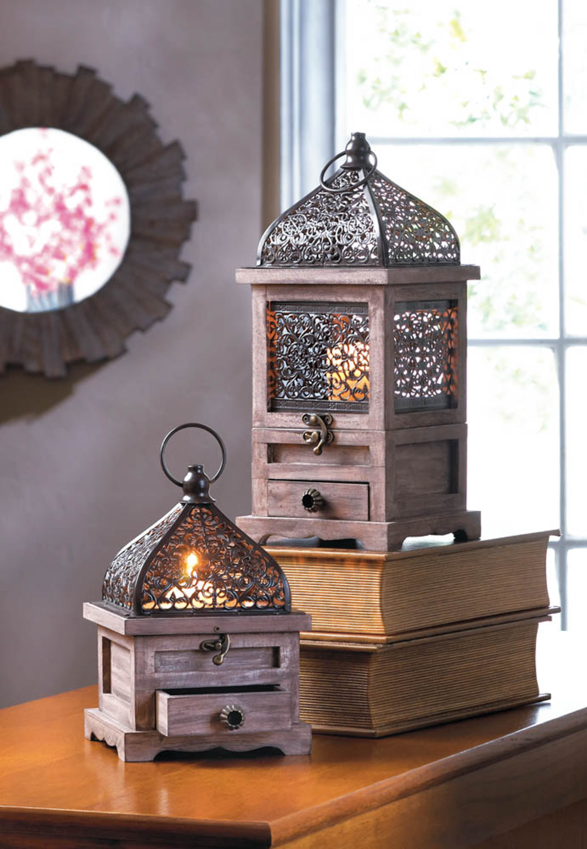 LARGE FLIP-TOP WOODEN LANTERN