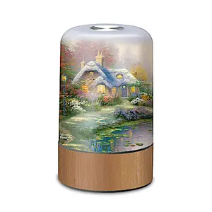 Touch-Activated Illuminated Table Centerpiece Collection Adorned With Thomas Kinkade Art - Admirers and home decorators agree - a work of art by Thomas Kinkade enriches a room not only with an enchanting scene but also with a very real sense of peace and tranquility. Now, own beloved favorites from Thomas Kinkade Studios in an innovative collection of illuminated table centerpieces you can place as you please and move from room to room whenever you like. Introducing the Thomas Kinkade Tranquil Moments Table Centerpiece Collection, available exclusively from The Bradford Exchange. This limited-edition collection begins with Issue One, Everetts Cottage. Soon your collection will continue with Issue Two, Sweetheart Cottage II, followed by Issue Three, Lamplight Bridge and additional touch-activated centerpieces with Thomas Kinkade art, each a separate issue to follow.Each table centerpiece in this collection is wrapped with a different, warmly inviting masterwork of Thomas Kinkade's luminous artistry. Perfectly styled to be placed anywhere in your home where you could use a touch of serenity, all it takes is a tap of your hand on the silver disk at the top to turn the brilliant LEDs on, make them glow brighter or turn them off. It's that simple! Each cordless centerpiece features a rechargeable battery to power its illumination and arrives with a convenient charger and USB port. This cozy collection is sure to make a comforting addition to your cottage decor! Strong demand is anticipated, so don't delay. Order now!