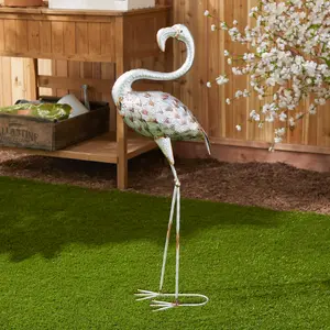 STANDING TALL GALVANIZED FLAMINGO STATUE