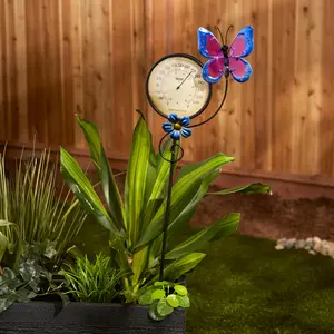 - Outdoor thermometer is made of durable iron and decorated to add charm and whimsey to your garden space.