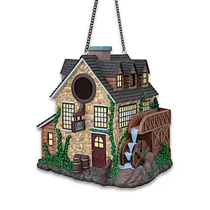 Thomas Kinkade Illuminated Outdoor Songbird Village Birdhouse Collection - Full of independence, sass and personality, songbirds have a special way of brightening our days as their sweet, melodious tones bring a feeling of peace and unity to every morning. Now, invite songbirds to make a home in your garden with this collection of functional birdhouse sculptures inspired by the welcoming havens depicted in Thomas Kinkade's art. Available only from The Bradford Exchange, Hawthorne Village Division, your Thomas Kinkade Songbird Village Birdhouse Collection begins with Issue One, Old Mill. Next to arrive will be Issue Two, Country Church. Soon, your collection will continue with Issue Three and additional fully functional birdhouses, each a separate issue to follow.From the vibrant blooms of the flowers to the traditional design of these tranquil birdhouses, each sculpture in this collection is handcrafted and hand-painted to enhance every charming detail. Plus, each birdhouse sculpture illuminates from within, using perfectly safe solar-cell powered LED's that offer a gentle, warm and peacefully alluring dwelling for your winged friends. Built-in vents, mounting hardware, wooden perches and an opening for easy cleaning help make birds of all kinds feel secure and welcome as they set up residence. These birdhouses also make a delightful addition to any Thomas Kinkade decor indoors as well. Strong demand is anticipated, so don't wait. Order now!