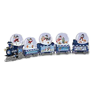 Dona Gelsinger Snowglobe Train Featuring Sculpted Snowman Scenes With Holiday Messages And Imagery - With their wide smiles and colorful outfits, the sight of a snowman is an instant symbol of cheer and a welcome sight of winter. What a wonder it is to see these merry messengers greeting their furry new friends as swirls of snow spin around, making each woodland scene even more festive. And now, inspired by the imagery of acclaimed artist Dona Gelsinger, this snowman snowglobe train set is sure to fill your home with loads of festive holiday fun! Introducing the Dona Gelsinger Snowball Express Snowglobe Set, a limited-edition first ever available exclusively from The Bradford Exchange.Expertly handcrafted to create a masterpiece that's distinctively its own, each miniature train car in this five-piece set showcases Donna Gelsinger's beloved imagery, recreated in sculpted three-dimensional scenes with each tiny detail painted by hand. The snowmen sculptures within the crystal-clear glass globes are surrounded by sculpted bunnies, songbirds, whitetail deer and other adorable woodland friends. And with a gentle shake, swirling glittering "snowflakes" fill the scenes with winter wonder. The train cars are graced with festive decorations, gleaming silvery snowflakes, holiday messages and vividly recreated snowman art from Dona Gelsinger. Plus, the engine car plays the melody of "Jingle Bells" to get your holiday spirit on track. Each car connects for easy display on a table, shelf, mantel, or under the tree - anywhere in your Christmas decor you'd like to add some holiday cheer! Strong demand is anticipated, so don't delay. Order now!