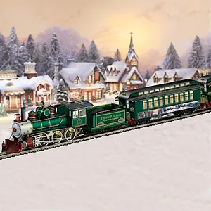 Take a ride back to a simpler time on the only illuminated electric Christmas train collection inspired by Thomas Kinkade, the most collected artist of our time! Your collection begins with Issue One featuring the impressive steam locomotive and coal tender. Soon after you will receive Issue Two, a classic train car, which includes the FREE 16-piece HO gauge track. Then your Thomas Kinkade train collection continues with Issue Three, another train car, which includes your FREE power pack. Additional Thomas Kinkade-inspired train cars, each a separate issue, will follow. Available only from Hawthorne Village, this richly detailed Christmas train collection was specially created to lend vintage charm to your sculptural village collection. Each train car is embellished with a Thomas Kinkade Christmas scene and lavished with authentic details, including a headlight on the 2-6-0 engine and passenger cars that actually light up. Just imagine the Christmas Express, its windows aglow and the locomotive shining the way, spreading Christmas cheer as it rolls through your collectible village - if you hurry! Strong demand is expected, so order now!