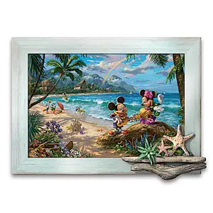 Disney Thomas Kinkade Sunshine Fun Personalized Wall Decor Featuring A Tropical Beach Scene With Vivid Colors & A Dimensional Shelf With The Look Of Driftwood That Adorns The Frame - Close your eyes and imagine yourself relaxing on a tropical beach with the sand beneath your toes and the sun on your back. Now, open your eyes...and suddenly you're there with some of your favorite friends! Introducing the Disney Thomas Kinkade Sunshine Fun Personalized Wall Decor, available from The Bradford Exchange. This tropical beach wall decor transports you to a seashore setting created by the Painter of Light™, featuring Disney's beloved Mickey Mouse and Minnie Mouse and friends. This dream-come-true home decor is personalized with any two initials "carved" in a heart on the rock to commemorate a special friendship or relationship.Impressively sized at 16 inches wide, this beach print is artisan recreated to capture all the vivid colors and tones of the original Thomas Kinkade artwork. The stunning vision of beach life features a frame sculpted of artist's resin, finished with an antique-wash look. A sculpted, dimensional driftwood shelf is attached to the frame displaying an ocean succulent and two starfish so real looking that you'll want to touch them. This delightful presentation arrives conveniently ready to hang on any wall. Display the tropical beach scene in your home or give it as a stunning personalized gift to loved ones who adore Mickey Mouse and Minnie Mouse. Strong demand is expected for our unique Disney decor, so don't delay. Order now!This fine home decor is not intended for children.