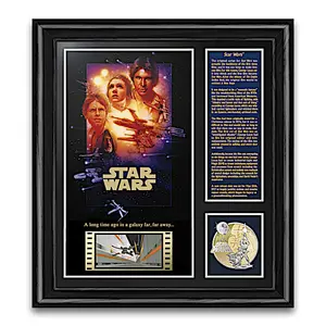 STAR WARS Trilogy Framed Wall Decor Collection Featuring Concept Art And Behind-The-Scenes Info About The Films With 22K Gold-Plated Medallions - Some stories take the world by storm, and so it was with the release of STAR WARS™ in 1977. From a single blockbuster film to a decades-long saga, STAR WARS has spawned an entire universe, an acknowledged religion and generations of ardent fans. Now, you can pay tribute to this pop culture phenomenon with STAR WARS art that brings glimpses behind the scenes during the creation of your favorite film franchise. Presenting the STARS WARS Wall Decor Collection, an exceptional Gallery Editions collection available in a limited edition only from The Bradford Exchange. This officially licensed collection begins with Issue One, STAR WARS. Next to arrive will be Issue Two, The Empire Strikes Back followed by Issue Three and additional STAR WARS collectible wall decor honoring the STAR WARS films, each a separate issue to follow.Each commemorative print in this collection boasts stunning recreations of original artwork used for promoting the STAR WARS films as well as full-color concept art used in the film's production in a frame reminiscent of a film cell. An additional framed vignette provides behind-the-scenes information about the film's production, giving a closer look at how these blockbusters were made. The film's original poster design is recalled in raised-relief artwork on a brilliant dual-plated medallion gleaming with nickel and 22K gold-plated finishes. A deluxe tribute to this franchise, each collectible print arrives ready to hang in a handsome, sleek black hardwood frame. What a stylish way to display a touch of unique STAR WARS decor in your home! Strong demand is expected, so don't miss out. Order now!